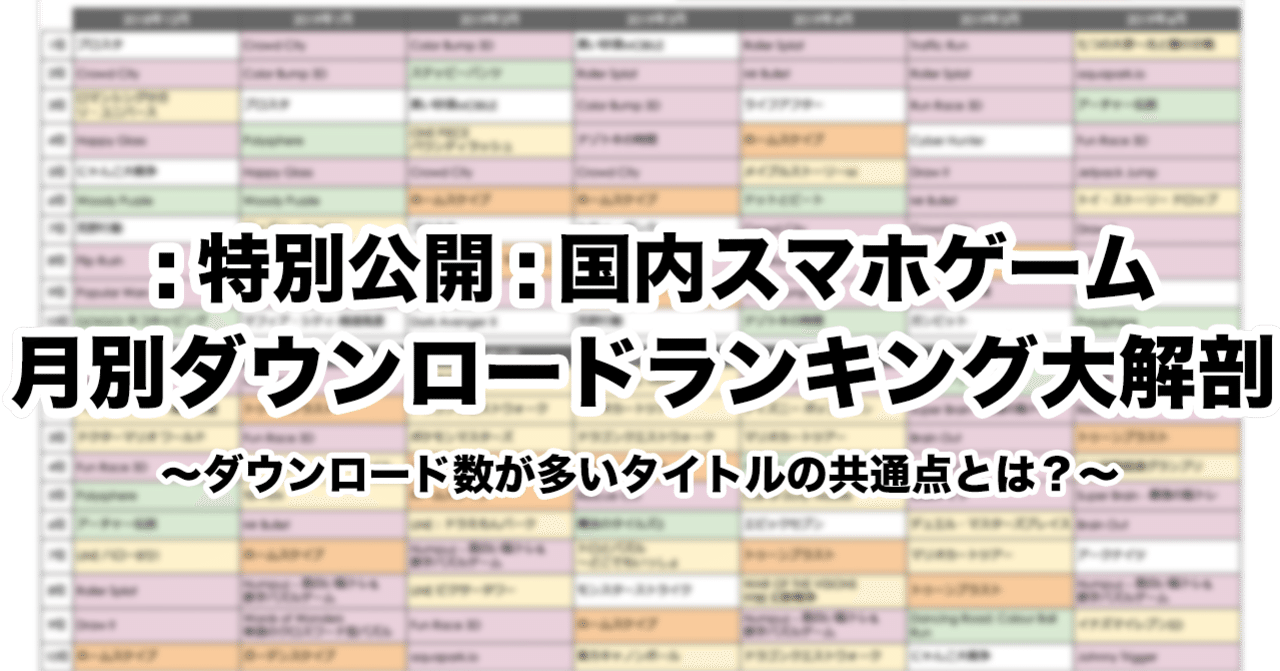 特別データ公開 国内スマホゲーム月別ダウンロードランキングtop50を大解剖 ダウンロード数が多いタイトルの共通点とは もっとい 佐藤 基 エンタメマーケター Note